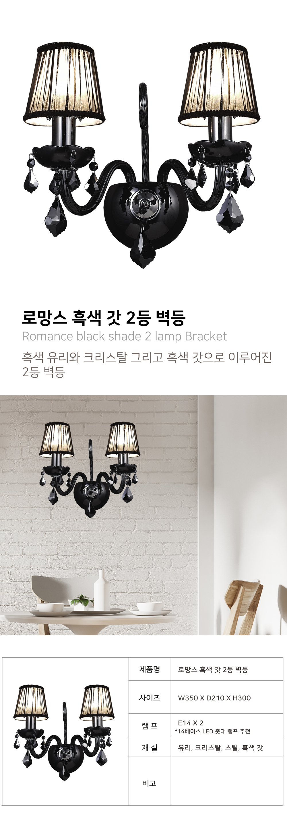 크리스탈, 유리, 스틸, 흑색 갓